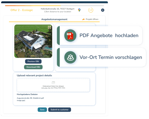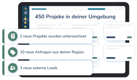 In der Projektansicht behalten Sie stets den Überblick über den Status und Fortschritt all Ihrer Projekte – von der Akquise bis zur Umsetzung. Vermeiden Sie Engpässe und optimieren Sie Ihre Ressourcen mit einer zentralen Plattform.